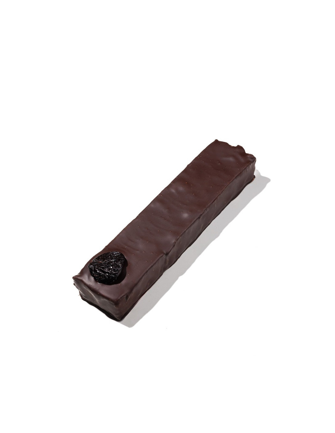 Turrón relleno de ganache aromatizada al armagnac con trocitos de ciruela, bañado en chocolate negro.